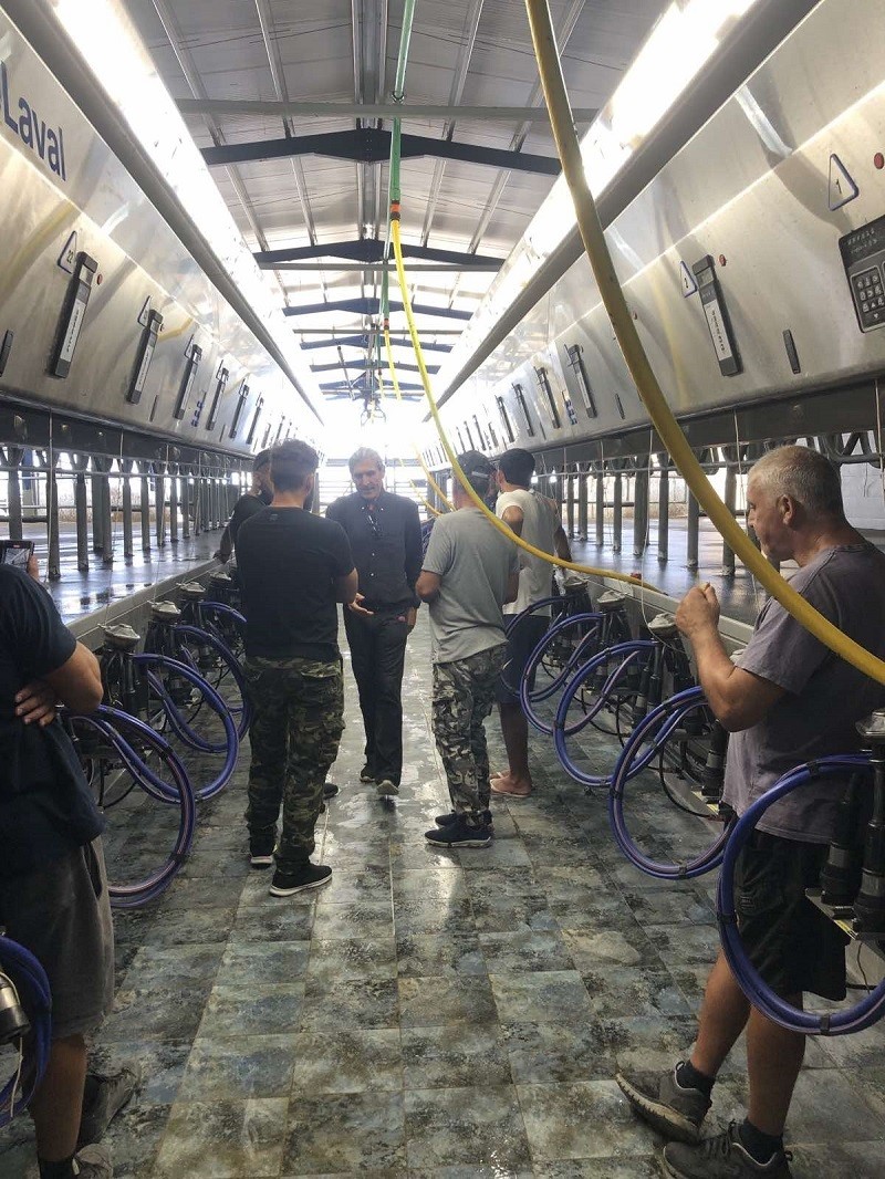 The particular Delaval cow milking system is parallel P2100 - 2 X 20, fast exit with the latest technology equipment such as MPC milk points and fully electronic counters, certified by the organization - International Committee for Animal Recording (ICAR).